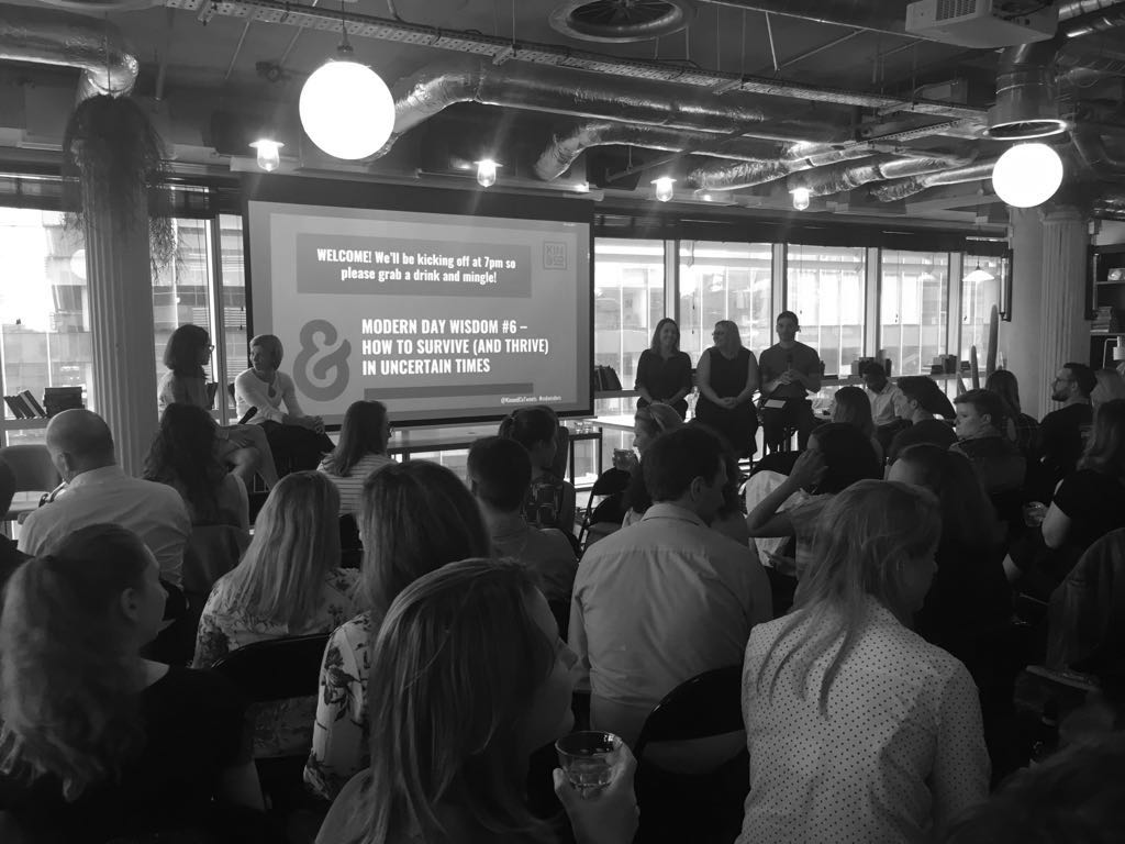 We were very fortunate to have four amazing panellists join us – Alex Birtles from TalkTalk, Claire Townson from The Joseph Rowntree Foundation, Katie Leggett from innocent and Rachael Bennett from Grant Thornton. They shared fresh insights on how companies can survive and thrive in uncertain times, drawing a brilliant crowd from companies including John Lewis, Barclays, Ella’s Kitchen, Wagamama and many more.